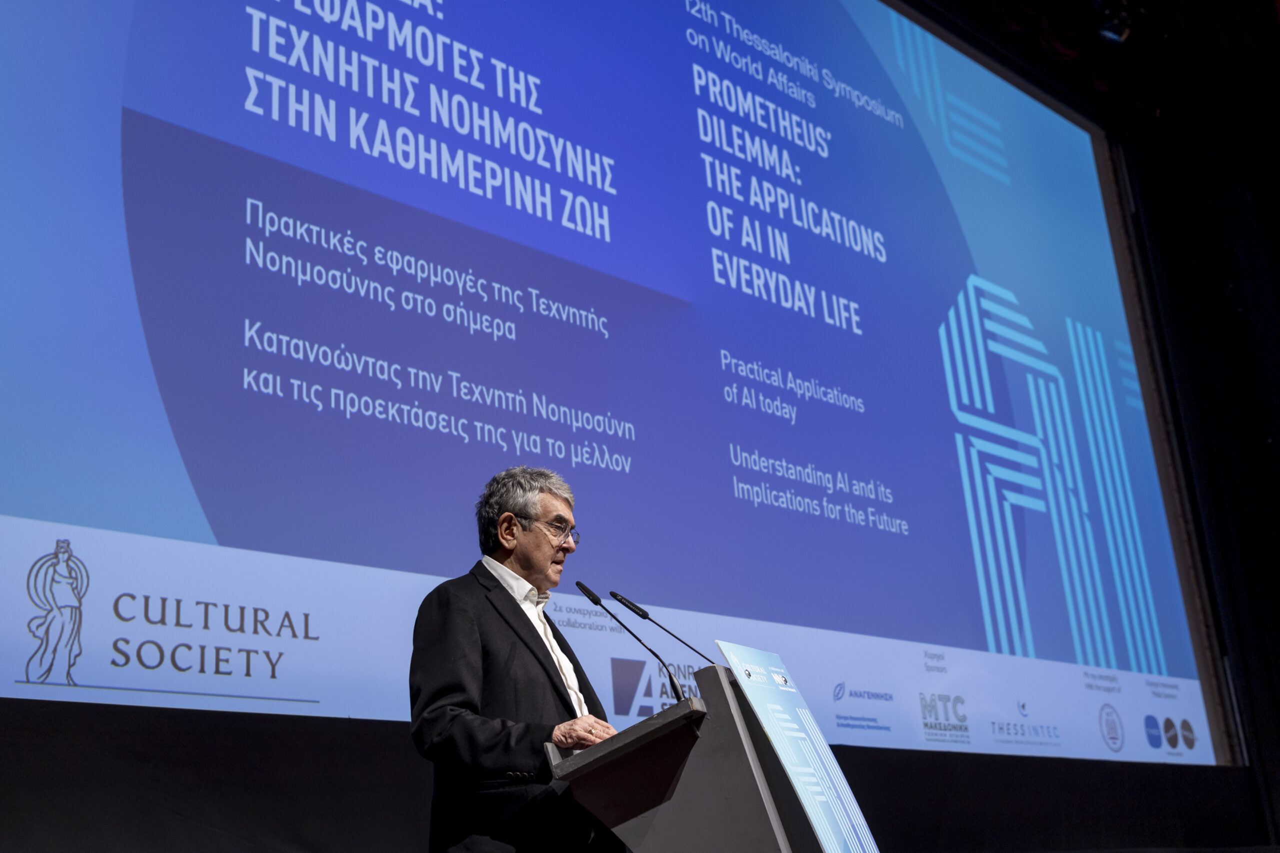 Η συζήτηση που ξεκίνησε στο πλαίσιο του περσινού Διεθνούς Συμποσίου Θεσσαλονίκης, για την Τεχνητή Νοημοσύνη και την υιοθέτησή της σε ολοένα και περισσότερους τομείς της καθημερινής ζωής, συνεχίστηκε φέτος σε μια ιδιαίτερα πετυχημένη διοργάνωση της  Πολιτιστικής Εταιρείας και του Δικτύου Ναυαρίνο, σε συνεργασία με το Konrad Adenauer Stiftung, που πραγματοποιήθηκε την Κυριακή 1 Δεκεμβρίου στο Ολύμπιον.