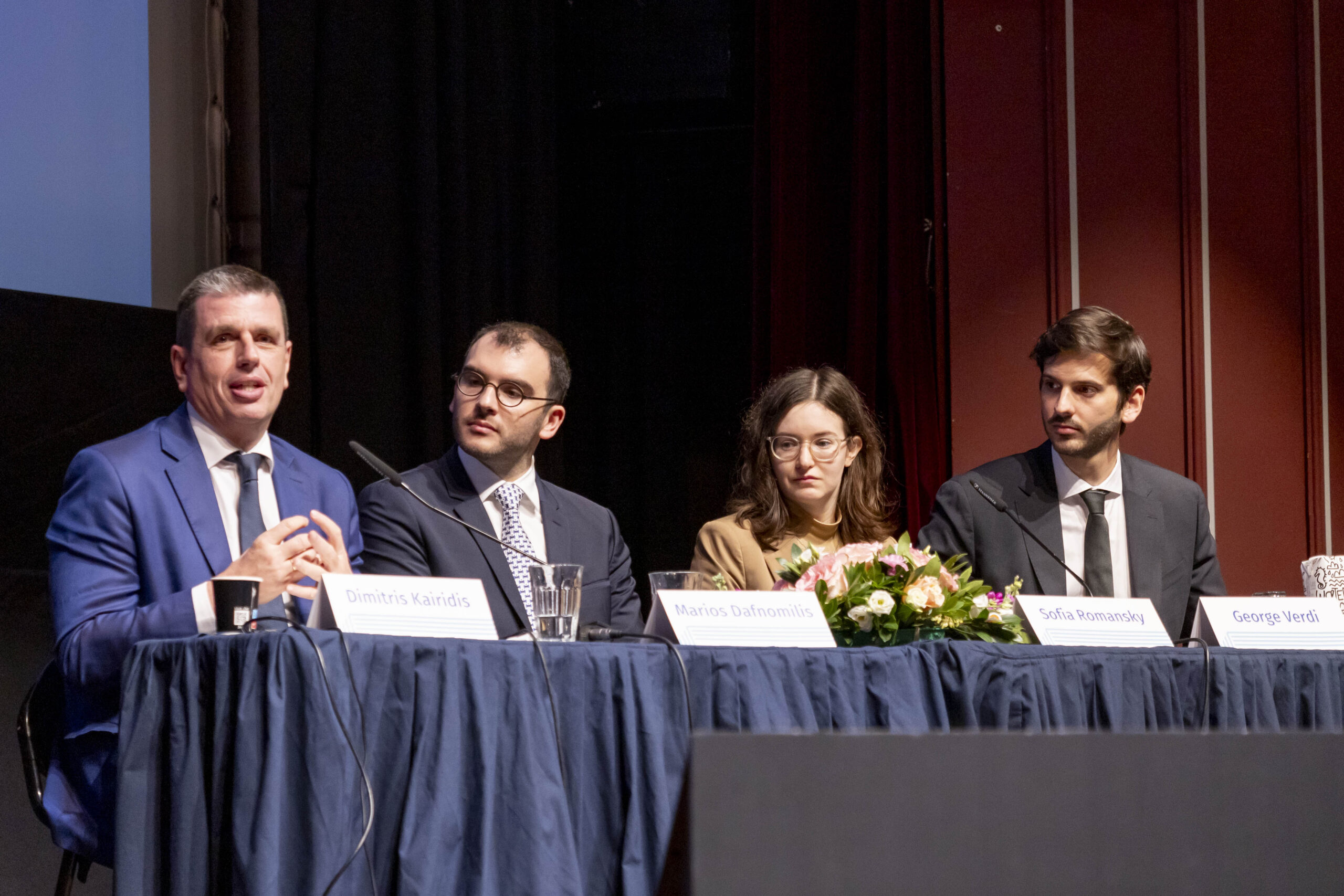 Το δεύτερο πάνελ, που σκοπό είχε την κατανόηση των προεκτάσεων της Τεχνητής Νοημοσύνης στο μέλλον, άνοιξε ο Μιχάλης Μπλέτσας, Διοικητής της Εθνικής Αρχής Κυβερνοασφάλειας, τονίζοντας πως η ΤΝ σήμερα “χακάρει” ανθρώπους και όχι υποδομές και μίλησε για την ανάγκη εκπαίδευσης του κοινού ώστε να αναγνωρίζει AI-generated περιεχόμενο και να είναι σε καλύτερη θέση να αντιλαμβάνεται απόπειρες παραπληροφόρησης. Η Sofia Romansky, στρατηγική αναλύτρια του Κέντρου Στρατηγικού Μελετών της Χάγης, ανέλυσε τις τρέχουσες εξελίξεις στις πολεμικές εφαρμογές της ΤΝ, αναφέροντας παραδείγματα από τους πολέμους σε Ουκρανία και Ισραήλ, και μίλησε για το πώς προβλέπει να ενταχθεί η ΤΝ στο διεθνές δίκαιο και τις διεθνείς συνθήκες. Ο Μάριος Δαφνομήλης, Σύμβουλος στην Ειδική Γραμματεία Μακροπρόθεσμου Σχεδιασμού, παρουσίασε κομμάτια της νέας Εθνικής Στρατηγικής για την Ανάπτυξη της Τεχνητής Νοημοσύνης υπογραμμίζοντας ότι η χώρα μας οφείλει να φροντίσει για την παροχή ελληνικού περιεχομένου στους αλγορίθμους προκειμένου να βελτιωθεί η αποδοτικότητα των νέων τεχνολογιών στην ελληνική γλώσσα. Τέλος, ο Γιώργος Βέρδη, σκιαγράφησε το διεθνές τοπίο, επισημαίνοντας πως «η Ευρώπη λόγω του ρυθμιστικού πλαισίου που προσπαθεί να διαμορφώσει για την ηθική χρήση του ΑΙ, αλλά και της πολυφωνίας 27 χωρών, μένει πίσω σε σχέση με την Αμερική και την Κίνα».