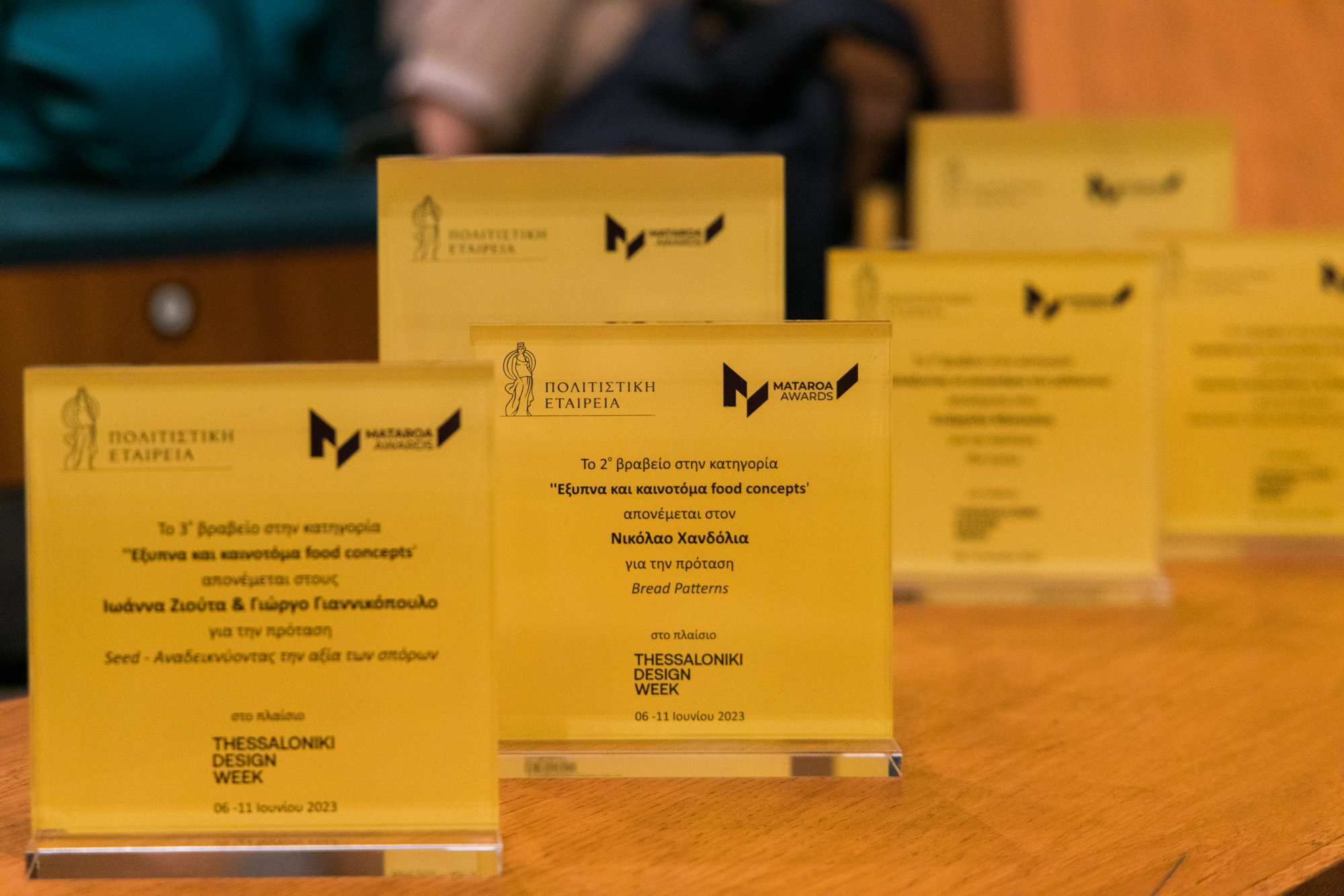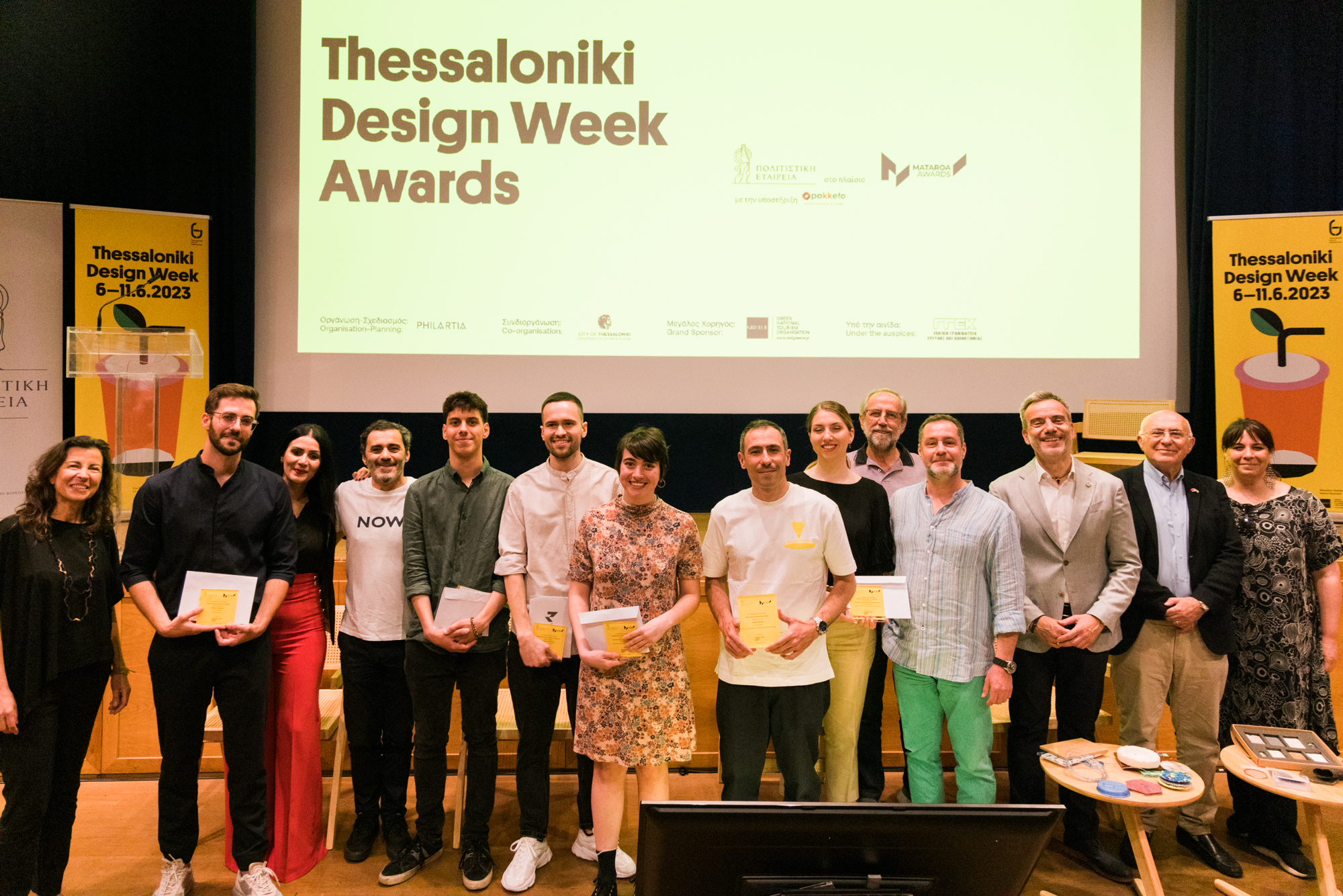 Η τελετή απονομής των MATAROA Design Awards πραγματοποιήθηκε με απόλυτη επιτυχία ανοίγοντας και εξερευνώντας ένα νέο καλλιτεχνικό πεδίο στη δραστηριότητα και την εξωστρέφεια του project. Μέλη και συνεργάτες της Πολιτιστικής Εταιρείας και του Thessaloniki Design Week 2023 καθώς και ο Δήμαρχος της Θεσσαλονίκης Κωνσταντίνος Ζέρβας, απένειμαν χρηματικά έπαθλα στους διακεκριμένους δημιουργούς της διοργάνωσης.