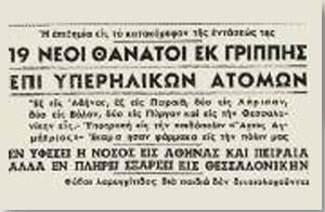 Πτυχές των επιδημιών γρίπης (1918 και 1957). Στο ρεπορτάζ, την αρθρογραφία και τις γελοιογραφίες της εποχής βρίσκει κανείς απίστευτες αναλογίες με το παρόν.